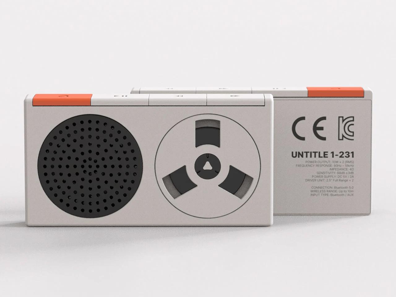 Смотрите, какой кайфовый концепт от Jinkyo Han. Bluetooth-плеер, и опять с акцентом на ретро-кассетной деке. DAC для нормального звука, моно-динамик на 10 Вт и эффект крутящейся кассеты, хотя её на самом деле нет. По сути, просто колонка для стриминга с телефона.